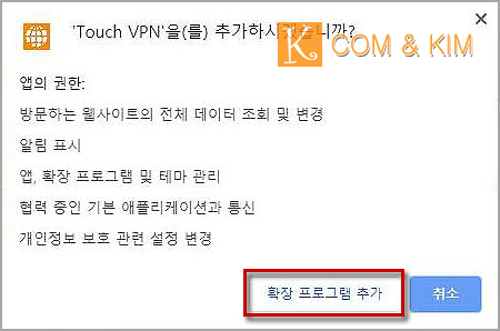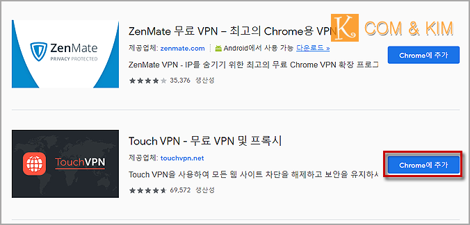 굳이 'Touch VPN'이 아니더라도 다른 무료 VPN 확장 프로그램을 설치해도 상관없습니다.