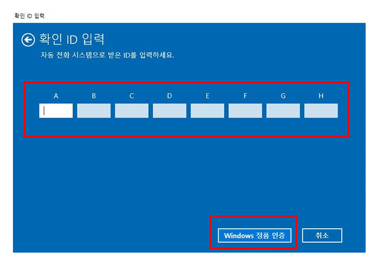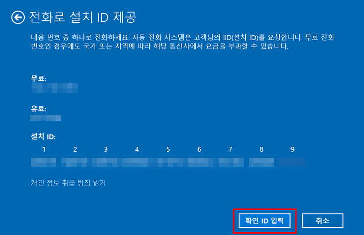 박스 안에 메모장에 적어두었던 63개의 숫자(설치아이디)를 입력합니다.