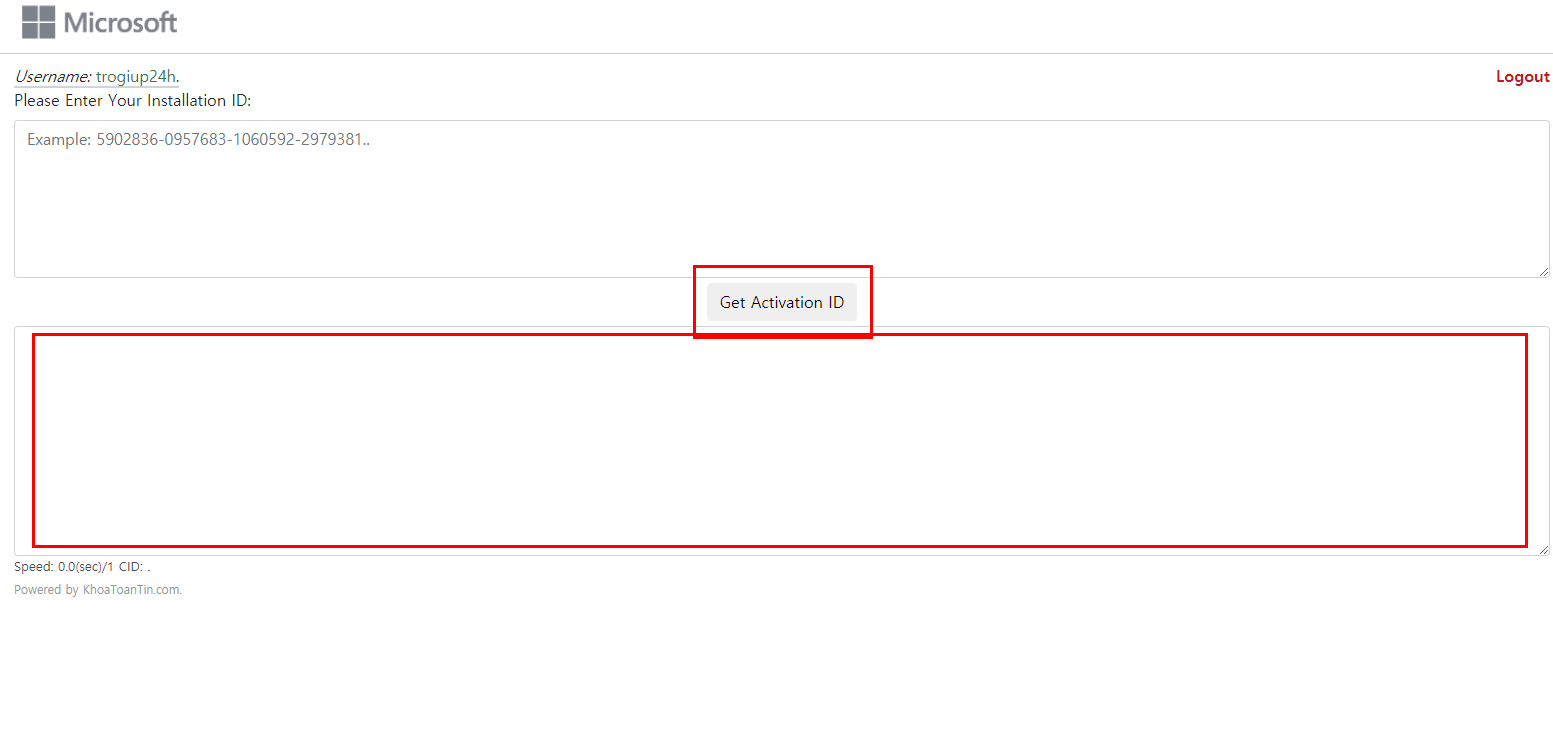 입력 후 Get Activation ID를 클릭하면 '확인 아이디'가 생성됩니다.